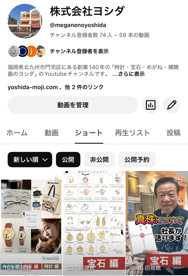 YouTubeチャンネル 株式会社ヨシダ @meganenoyoshida